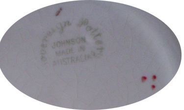 Here is a closeup photograph of the side plate ... the markings on the saucer are similar and the teacup underside has (poorly impressed into the earthenware) MADE IN AUSTRALIA, no Johnson backstamp as such although the artist's mark is present.