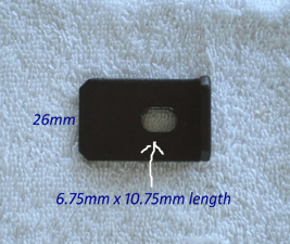 The single slot on the longer side of the L bracket is 6.75mm wide x 10.75mm length