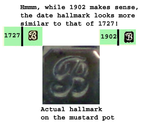 Looking at the design of this mustard pot (and there were period differences over the years) I am quite sure this is an early 20th Century product, not a product from the 18th Century! The overall design is simple, not overtly ornate, and looks very similar to other pots from the early 20th Century and 1902 fits nicely with the company history.