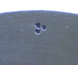 Identification has been made using the stamped impression on the TOP side of the tray. I also have found a curious stamp on the underside, it looks for all the world like a "dogs paw" Here is a photograph of it