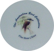 Pattern (name unknown) comprises three separate and different decorations depicting Kookaburra's (Kingfishers) sitting on Gumtree branches, they look to be having a "kooka discussion!"