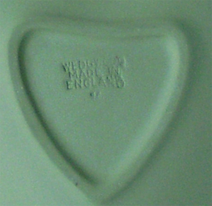 The stamped impression underneath clearly indicates WEDGWOOD MADE IN ENGLAND however the two character code below this is far from certain ... it just doesn't look like two numerals (as I would have expected) but instead one character is something like a "speech bubble"! and the other perhaps an F but not a numeral - I just cannot figure them out, even when viewed under a magnifying glass.This photograph probably will not help much but this is a view of the underside for those who want to try and figure out the coding used.