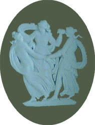 This is a Greek neoclassical scene, typically used on many Wedgwood jasperware pieces and this particular pattern is often referred to as "The Three Graces"